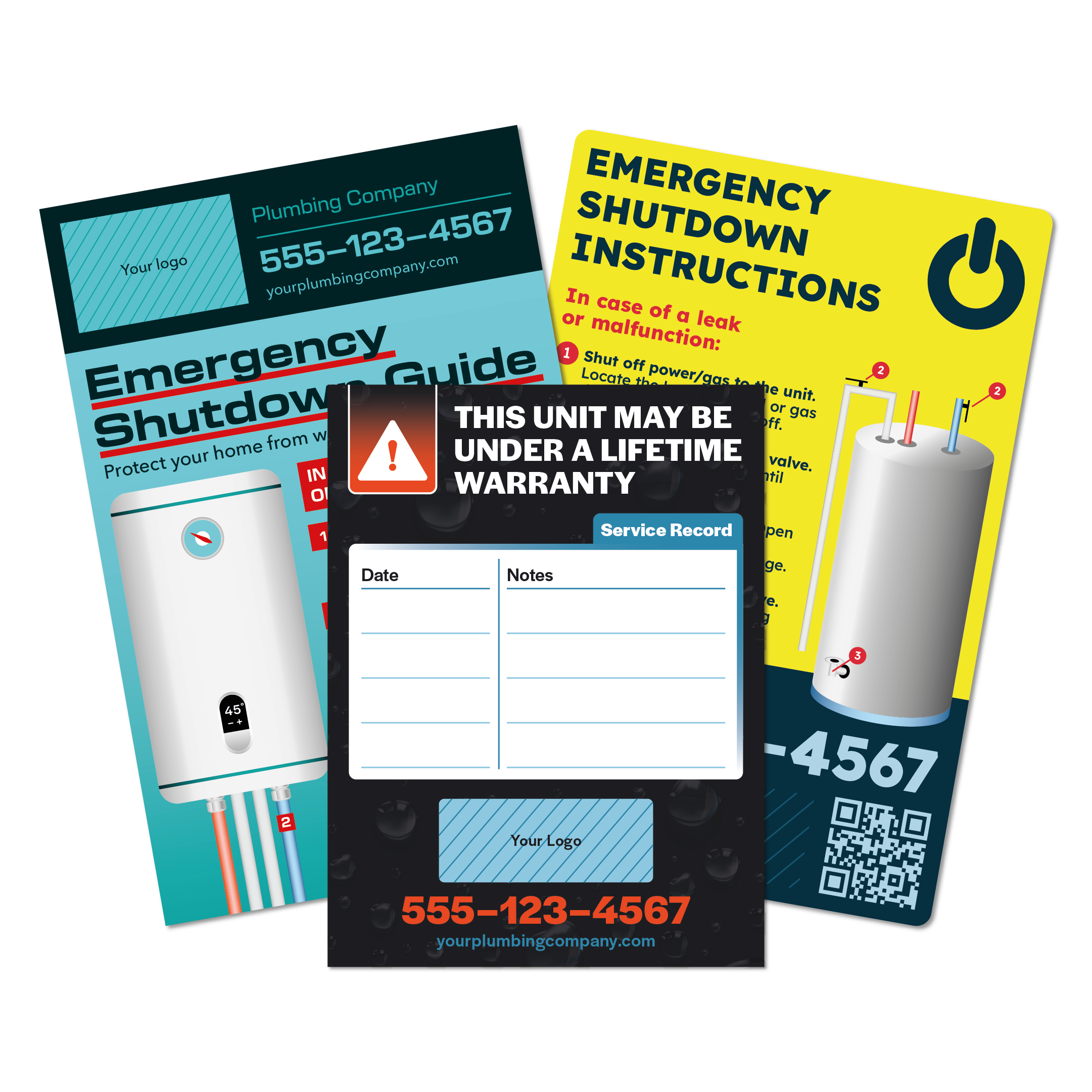That’s why top plumbing contractors use custom service stickers right on the equipment—so they get the call, every time.